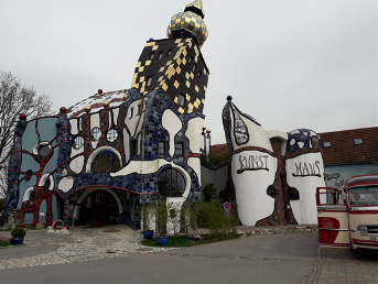 Im Biergarten der Brauerei legten wir bei Brezen und einem kühlen Getränk eine Pause ein. Bevor es wieder Richtung Heimat ging, nutzten wir die Gelegenheit im Museum Bilder von Hundertwasser und einige Modelle der Gebäude die der Künstler gebaut hatte zu besichtigen.